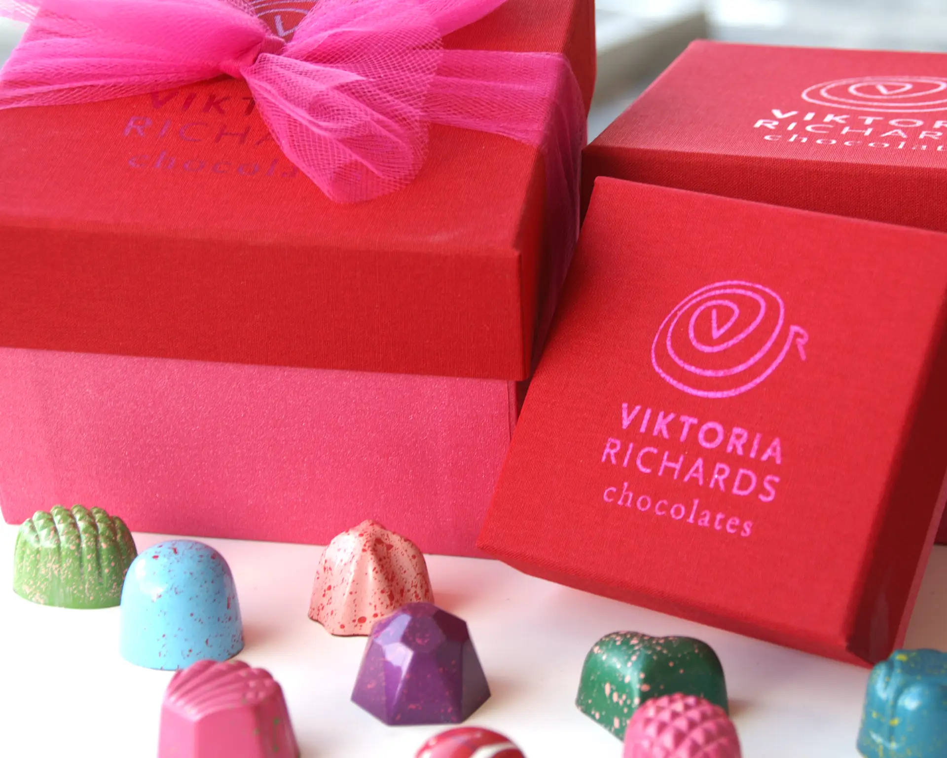Our twenty four piece box is the perfect gift. Your chocolates will be presented in one of our signature boxes.